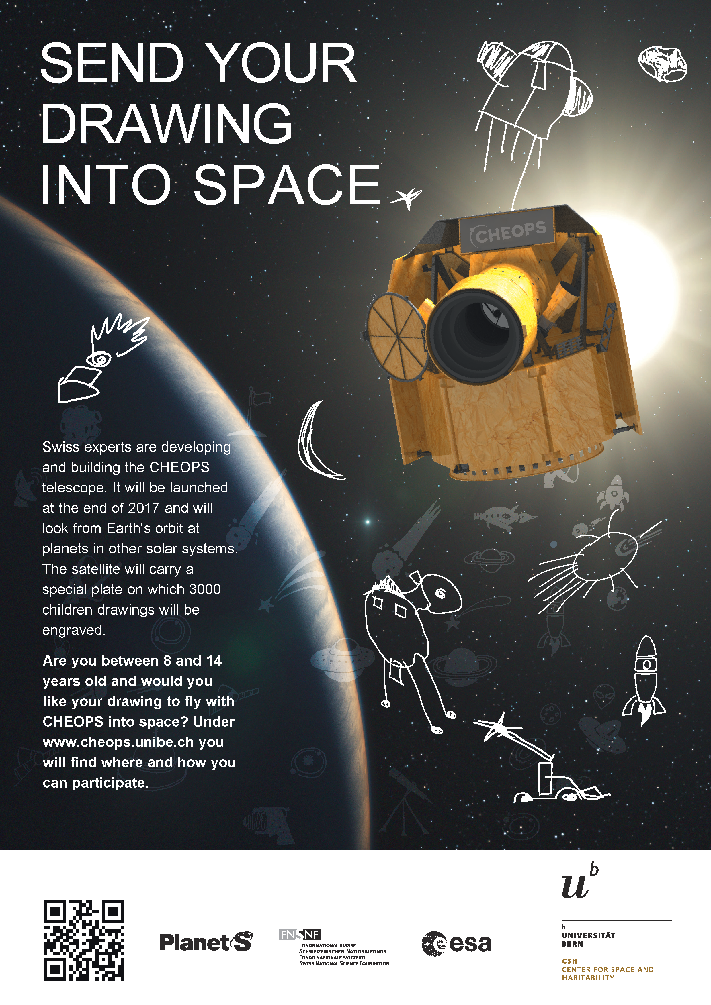 The topic of the drawing has to be related to space and/or the space telescope CHEOPS.